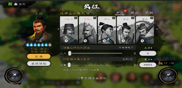 在游戏中兵种可分为步兵、骑兵、机械三大类,细分则有弓兵、弩兵、盾兵、轻骑兵等十余种。还有数十种专属兵种可以携带,出征时根据战况调配兵种阵容,能够达到先发制人,克敌机先的效果。